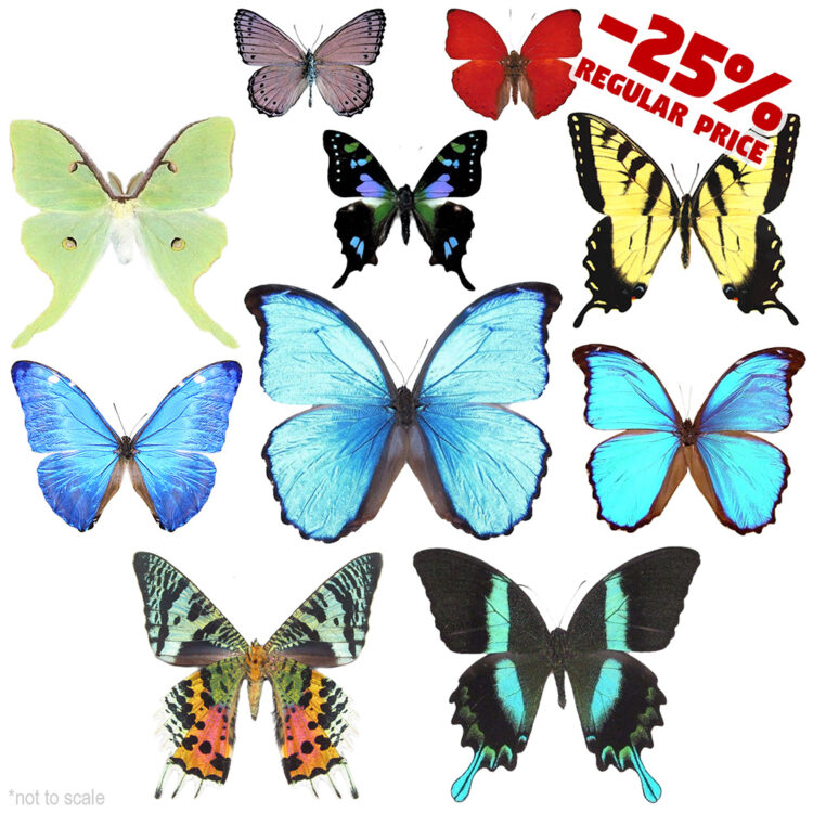 We are the leading supplier of worldwide unmounted and framed butterfly, moth, beetle, and bug specimens. The highest rated insect supply company in the United States, with over 51,000 five-star reviews! Custom order requests accepted, email [email protected]