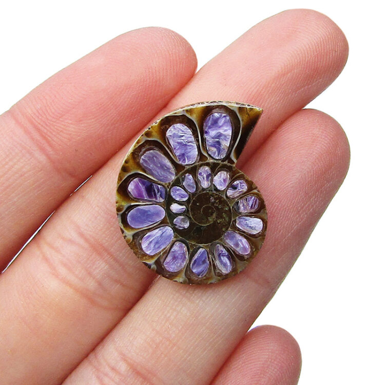 Ammonite with Russian Charoite RARE purple lavender gemstone inlay extinct shelled cephalopod fossil Madagascar (CIRS)