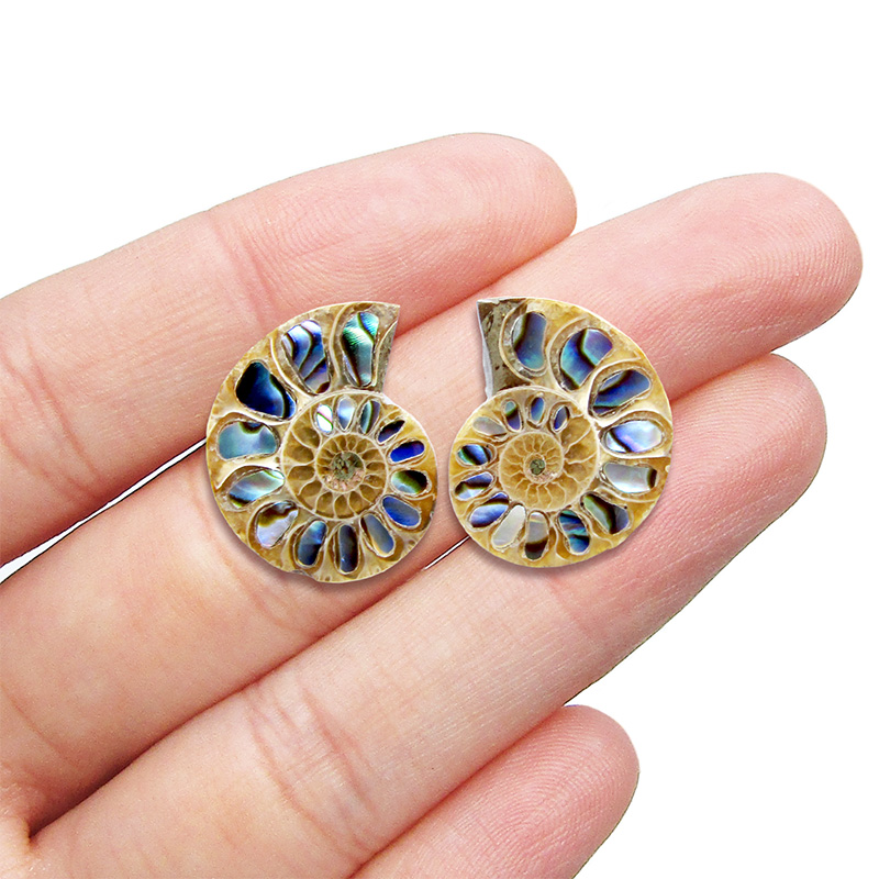Ammonite PAIR with Abalone blue green shell inlay extinct shelled cephalopod fossil Madagascar (CIRS)