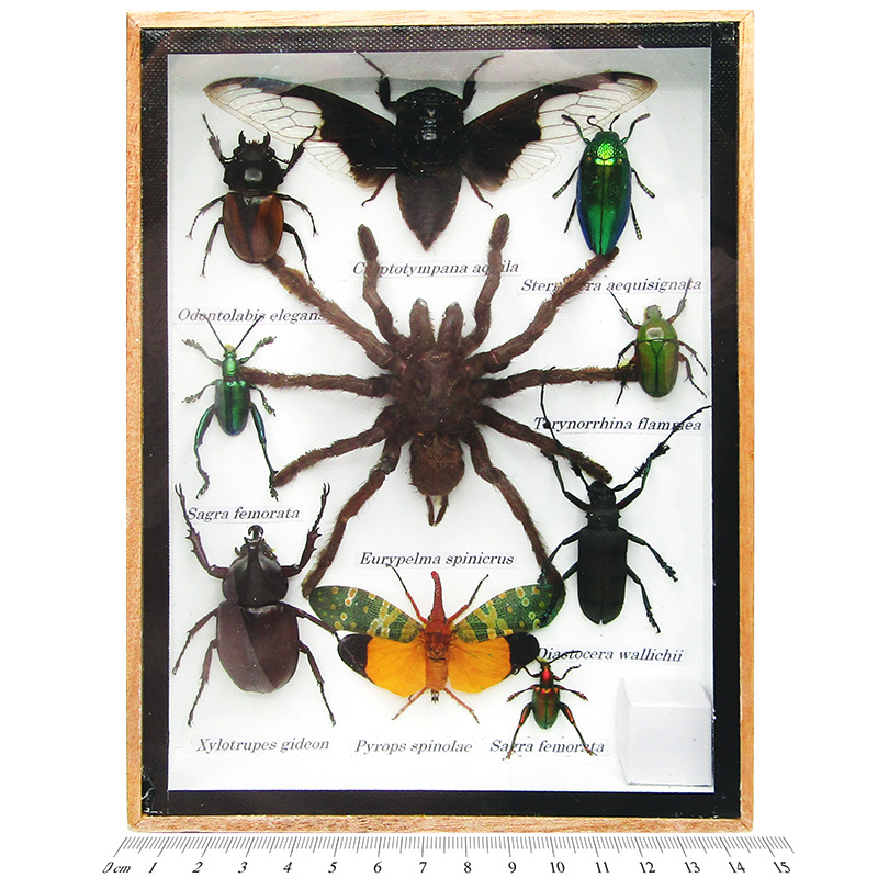 Each collection will include beetles, a tarantula and a cicada. Surrounding specimens may vary.