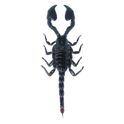 Heterometrus laoticus giant emperor scorpion mounted in defensive pose Thailand